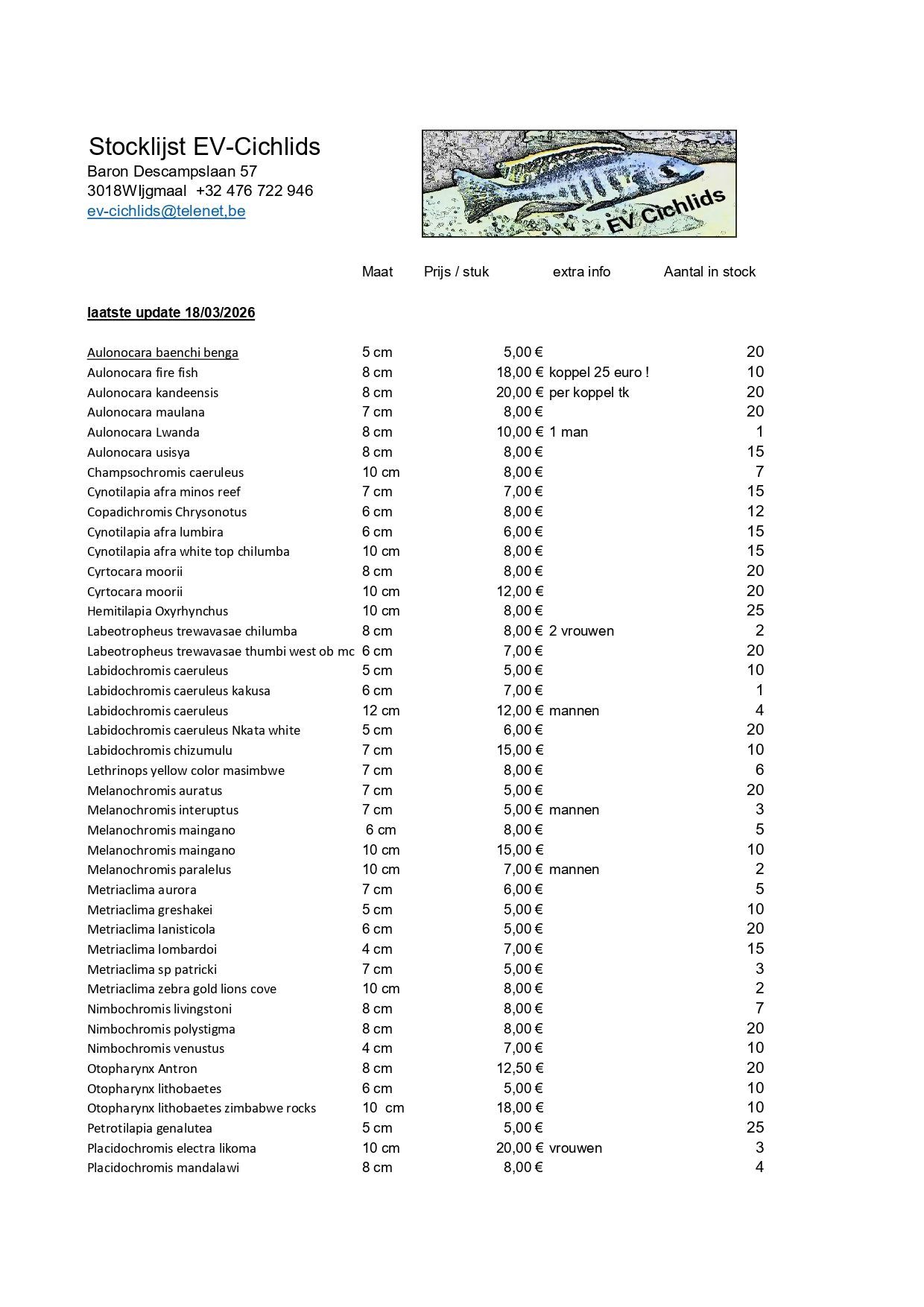 Contact opnemen met EV Cichlids in Wijgmaal